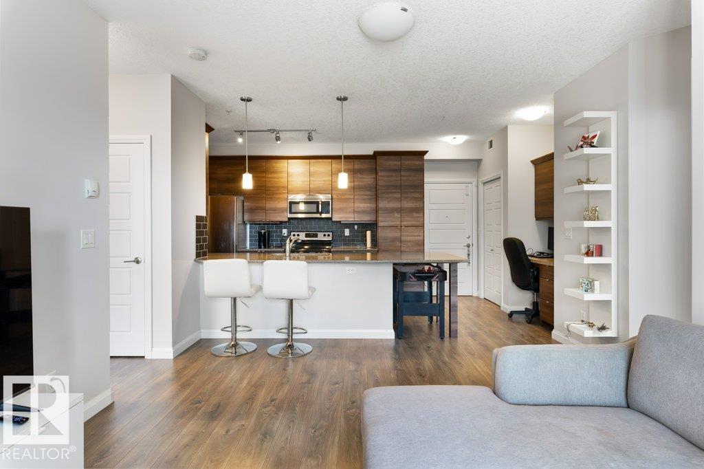 Modern 2-Bedroom, 2-Bathroom Condo in The Ion at Ambleside Discover contemporary living in this beautifully designed condo, featuring one of the most desirable kitchen layouts in the building. The upgraded kitchen boasts sleek cabinetry, stainless steel appliances, quartz countertops, and an oversized peninsula with seating for up to six—perfect for casual dining or entertaining. The open-concept floor plan seamlessly connects the kitchen, dining, and living areas, creating a bright and inviting space. The primary bedroom offers a walk-through closet and a private 4-piece ensuite for your comfort. A spacious second bedroom sits adjacent to another full 4-piece bath, making it an ideal guest room or home office. This unit includes two titled parking stalls—one heated underground and one surface stall for added convenience. The Ion’s amenities include a fully equipped fitness center, a party/media room, and outdoor spaces featuring a gazebo, BBQ area, and scenic walking trails around the lake.
