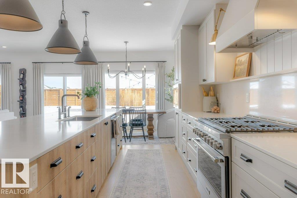 Stunning custom-built estate home in the Estates of Riverside offering 2,633 sq ft of beautifully finished living space in a quiet, desirable location. This home is truly move-in ready with completed landscaping, fencing, window coverings and Astoria exterior lighting already in place, delivering exceptional value. Featuring 9' ceilings, engineered hardwood floors and a bright great room with a striking stone gas fireplace. The chef’s kitchen offers a 13 ft island, quartz backsplash, 6 burner gas stove, custom shiplap feature wall and a fully equipped butler’s pantry. A statement wine room with fluted glass door adds character. Upstairs includes a large bonus room, luxurious primary suite with dual walk-in closets and spa-inspired ensuite, plus two bedrooms with Jack & Jill bath and upper laundry. Enjoy central A/C, hot water on demand and EV rough-in. Fully landscaped and fenced yard with composite deck and added privacy. Close to trails, parks and amenities. Oversized triple garage completes this home!