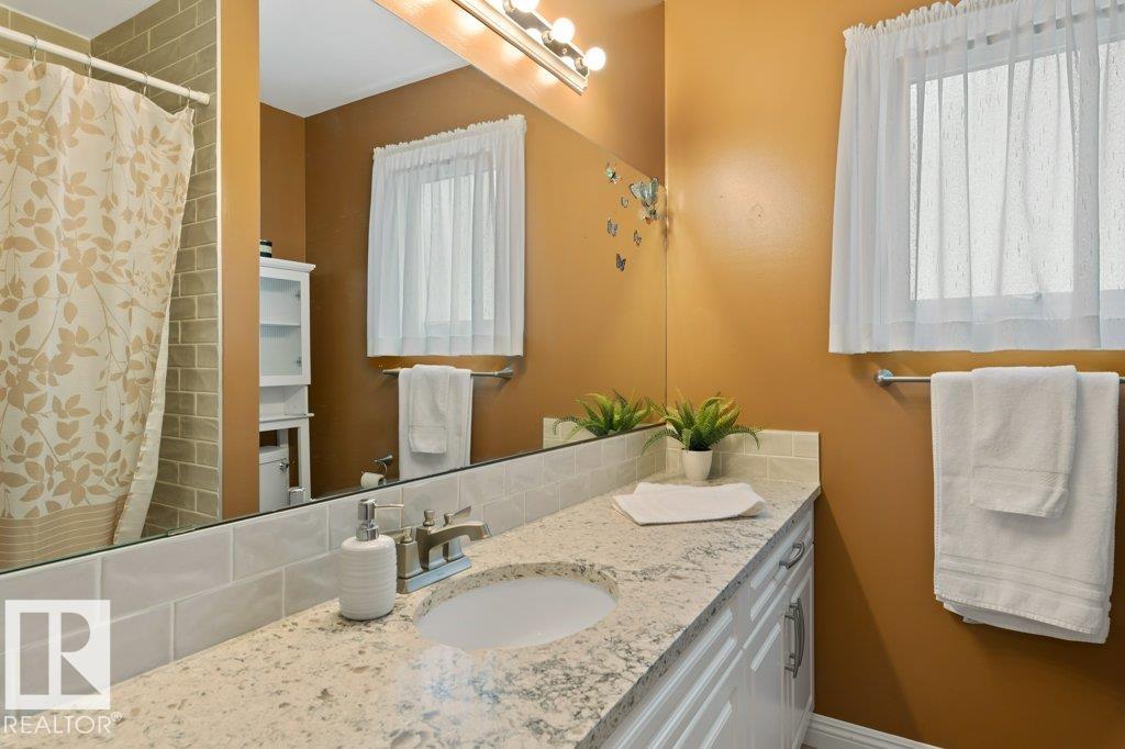 Welcome to this exceptionally cared for, original owner bungalow in the heart of Forest Lawn, one of St. Albert’s most vibrant communities. Step inside to a bright, inviting living space filled with natural light from large windows, perfect for relaxing or entertaining. The renovated cherry kitchen features granite countertops, newer appliances, ample cabinetry, a seating area, and views of the backyard. The main floor offers a spacious primary suite with a renovated 2 piece ensuite, a second bedroom, updated 4 piece bath, and main floor laundry with stand up shower and patio access to a ramped deck with gazebo included, with potential to convert back to a third bedroom. The basement features new carpet, fresh paint and baseboards, a large open area, den, huge storage room, and separate entrance. Heated oversized double detached garage and many upgrades throughout. Close to parks, amenities, and access to all levels of schools. Pride of ownership is evident throughout this move in ready home!